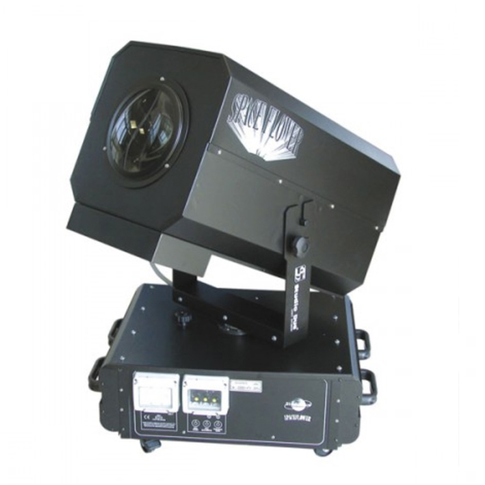 Featuring a 3kW discharge lamp, 150 degrees of pan, shutter and 3 circles of rays.
