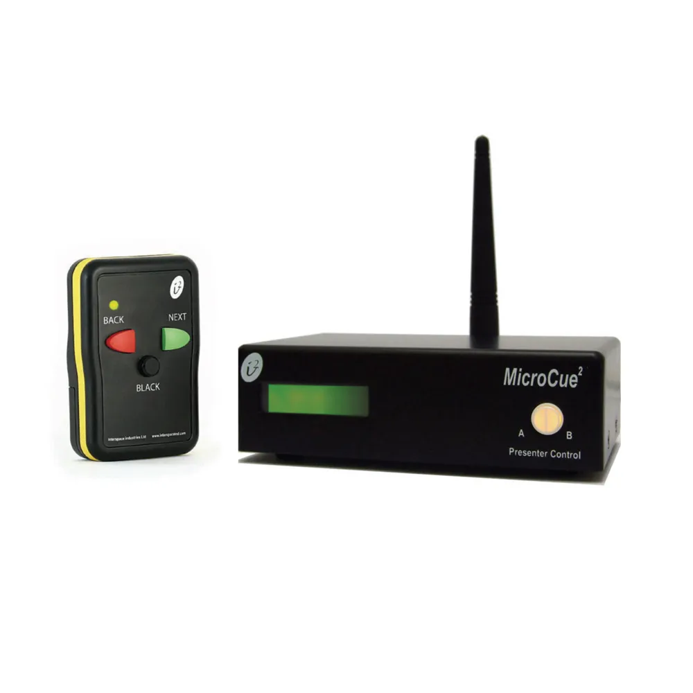 The Hive MicroCue 2 is a compact and reliable wireless presenter cueing system, ideal for live events, corporate presentations, and conferences. With a simple 3-button remote (Next, Back, and Black), it offers intuitive control for presenters while maintaining professional-grade reliability.The hub features dual USB ports, allowing simultaneous cueing of two separate computers, making it perfect for setups with backup or multi-version presentations. The system is lightweight and easy to deploy, with clear signal transmission and minimal setup required.Supplied in a custom soft carry case with all necessary accessories, the MicroCue 2 is a trusted solution for streamlined presenter control.