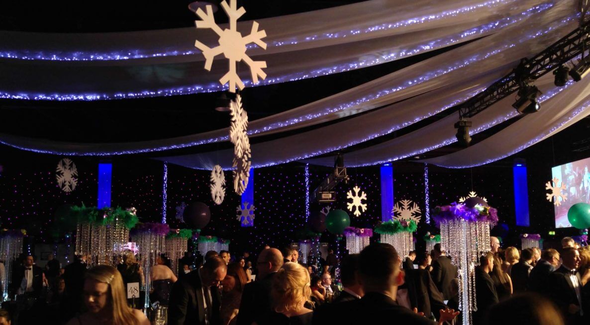 Premier supplied additional AV and decor equipment for this corporate Christmas party at the New Dock in Leeds
