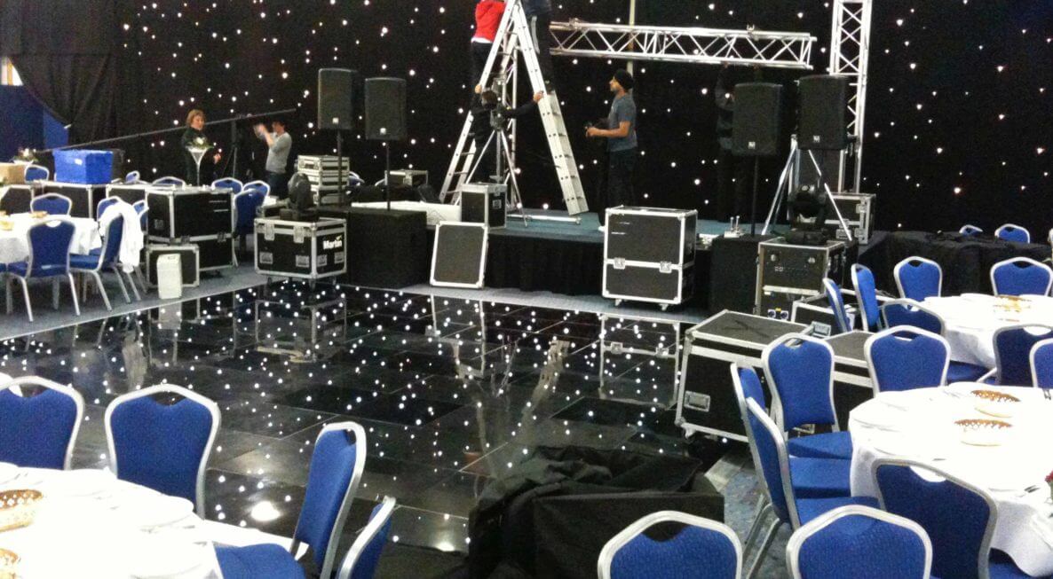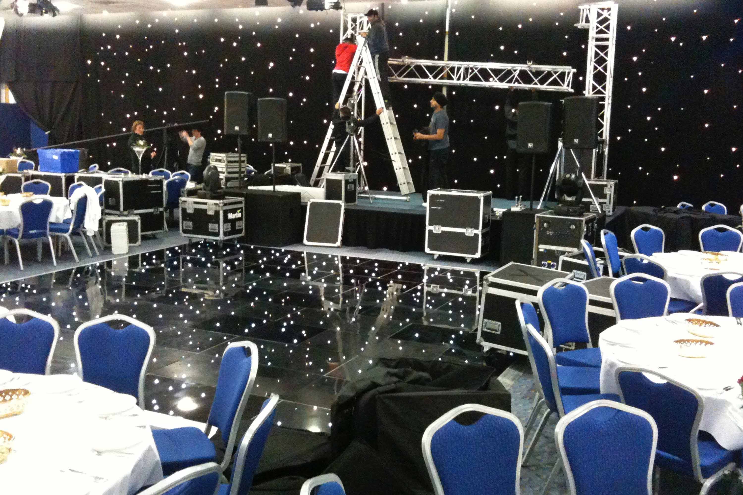 The black starlit dance floor fitted in superbly along with the black starcloth backdrops that were already installed at the venue.
