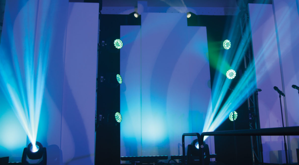 A mixture of both Fresnel’s and profile lights were used to illuminate the presenters on stage, these were fully dimmable, allowing us to dim the stage lighting during the VT’s.