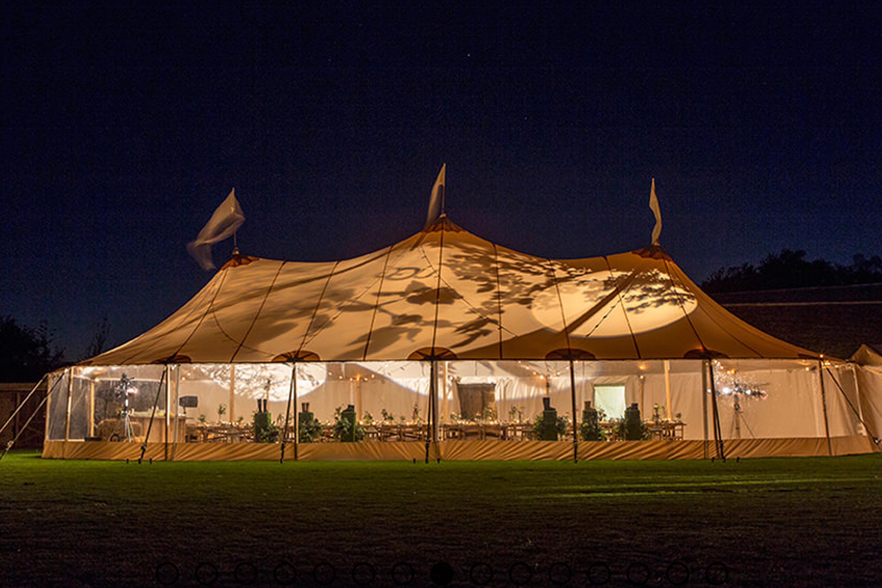 The brief was to use image projection to transform a new venue and its adjacent marquee for an evening event.
