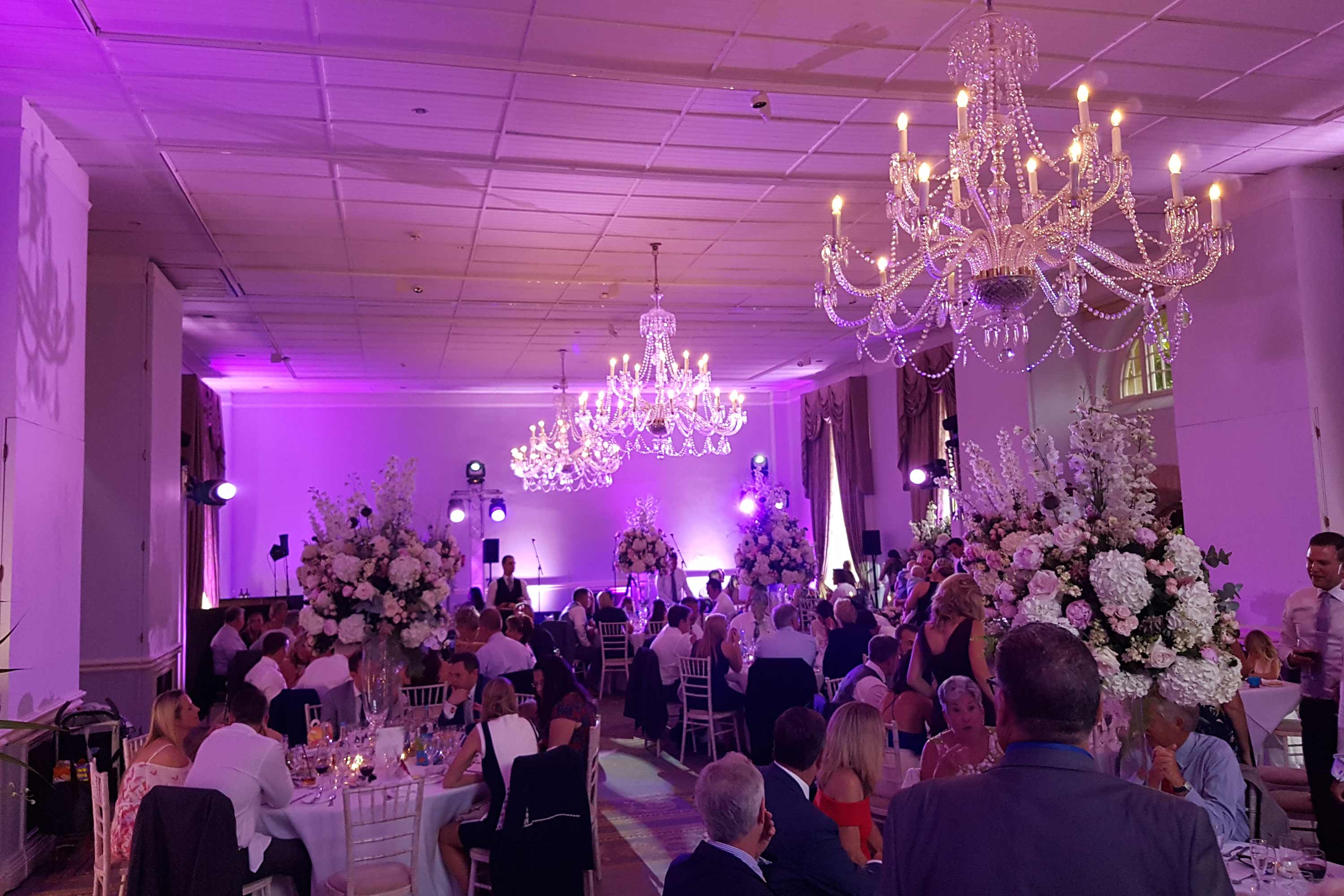 For the evening reception we provided a range of lighting that turned the Grand Hall into a night club. With our lighting technician on site from the get go, Natalie was in good hands. Our lighting technicians allow changes to be made their and then, but also ensure that your light show is top notch for your reception!